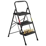 • ✅ Os traemos a vuestro alcance la mejor escalera domestica plegable, gracias a sus peldaños extras anchos la convierte en el taburete muy seguro para usarlo sin ningún miedo en cualquier situación aguantando hasta 150 kg.